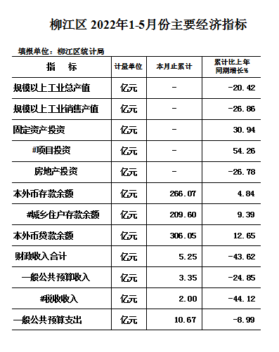 柳江区2022年1-5月份主要经济指标