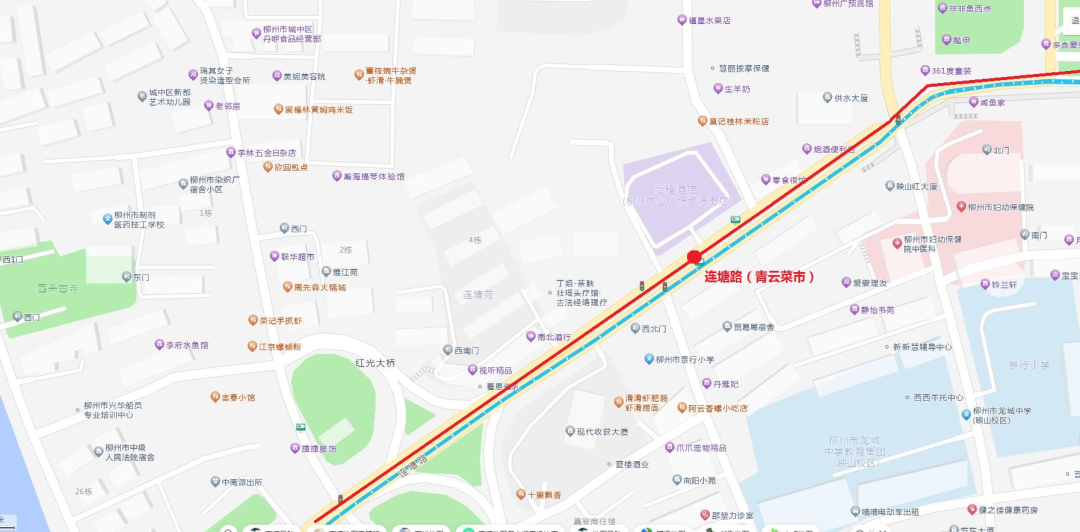 为进一步方便在青云菜市采购的市民就近乘坐公交返回柳北片区,8月16日起,38路从飞鹅商圈返回柳北片区途经连塘路时,增设“连塘路(青云菜市)”停靠站。
