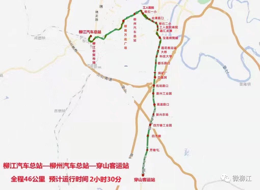 (调整后的柳江8路(拉堡至穿山)公交线路图)