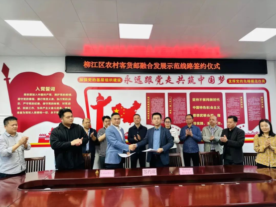 近日,柳江区交通运输局举行农村“客货邮”融合发展示范线路签约仪式。柳江区交通运输局、中国邮政柳江分公司、柳州市泰禾永兴公共交通有限责任公司领导班子和相关工作人员出席了签约仪式。