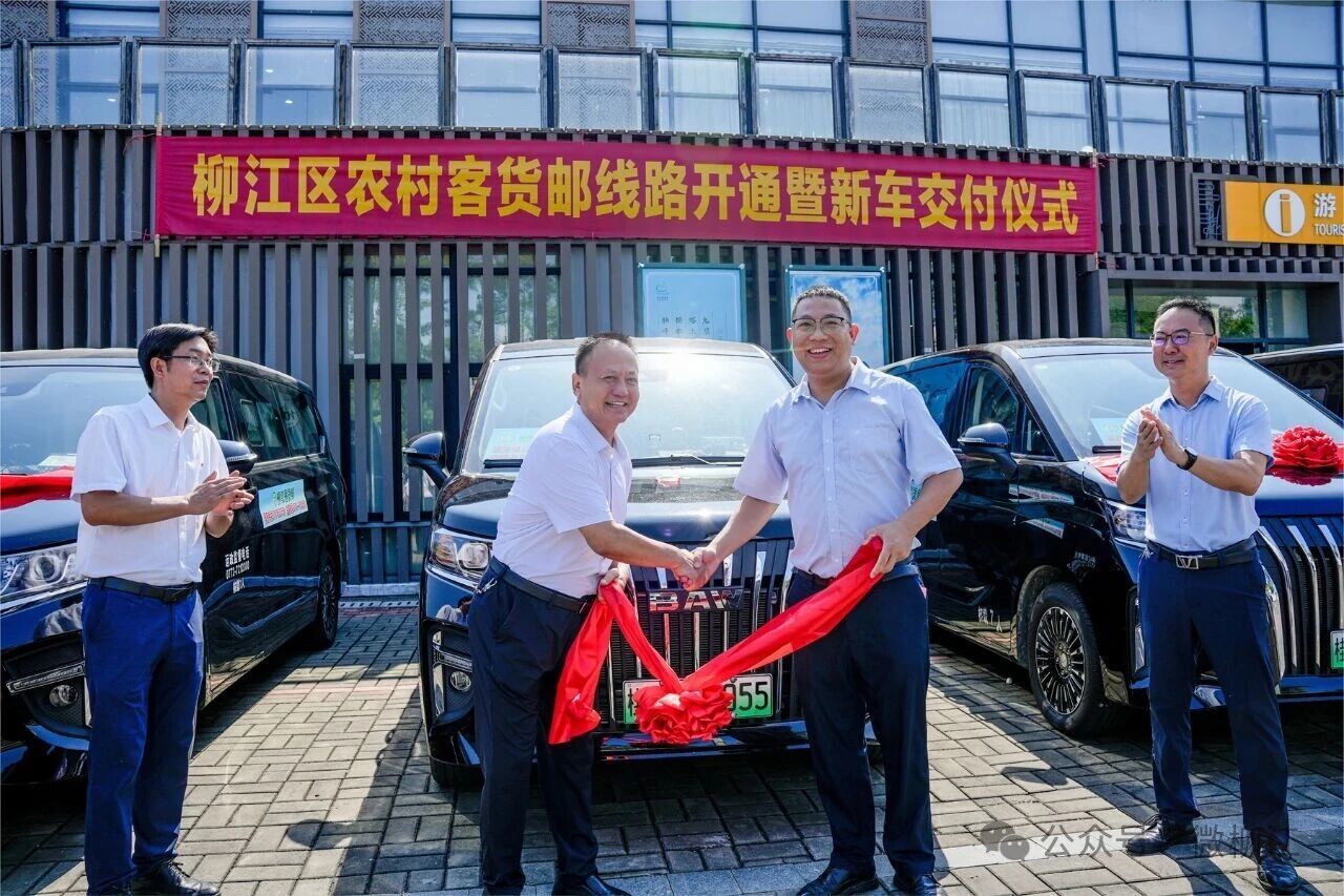 9月1日,柳江区农村客货邮线路开通暨新车交付仪式在柳江区岜公塘公园举行。区政府党组成员吉富美宣布线路正式开通,并与相关部门、企业负责人共同为新投入的客货邮车辆揭幕。