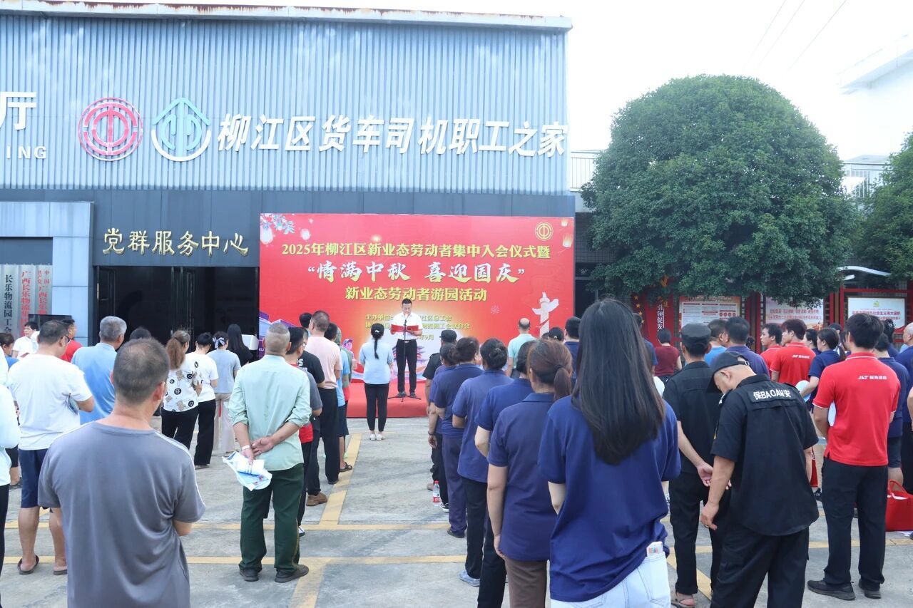 9月23日,2025年柳江区新业态劳动者集中入会仪式暨“情满中秋 喜迎国庆”新业态劳动者游园活动在长乐物流园职工之家(党群服务中心)举行。活动旨在扩大对新就业形态劳动者的组织覆盖和服务覆盖,进一步增强工会组织的凝聚力和影响力。