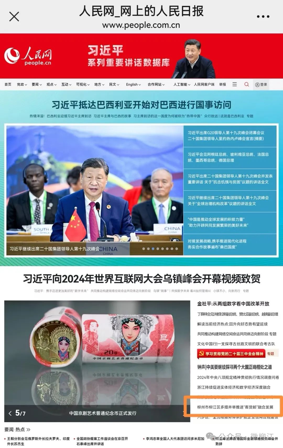 11月20日,人民网总网首页推发《柳州市柳江区多措并举推进“客货邮”融合发展》,报道柳江区大力推进农村“客货邮”融合发展,打通农村地区群众出行、货运物流、快递服务“最后一公里”。