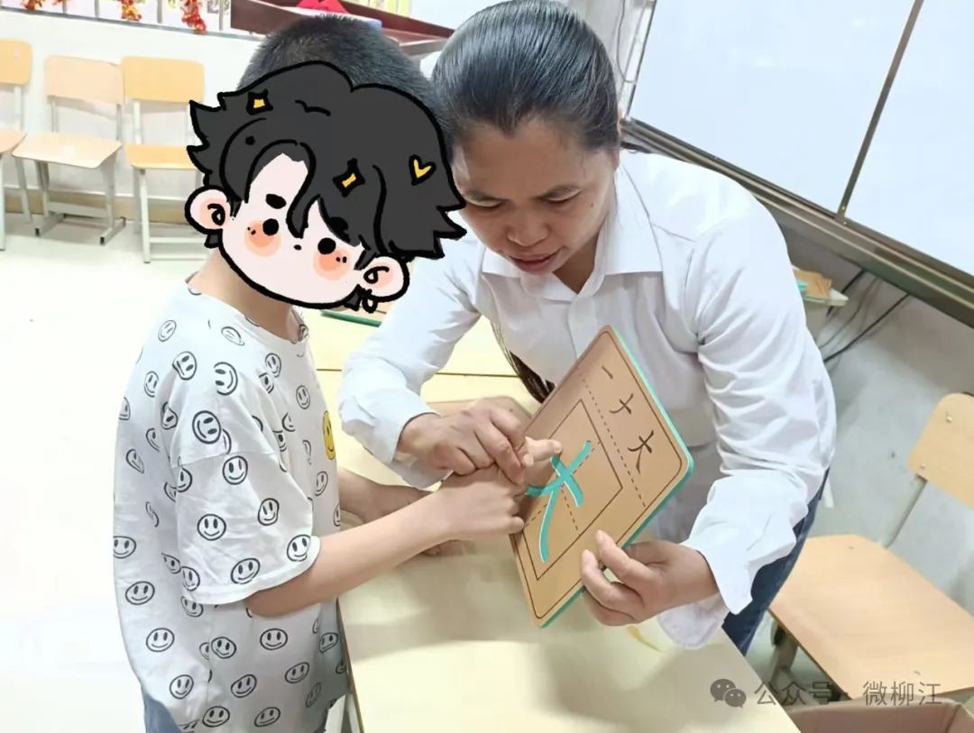 覃柳飞,2000年从桂林民族师范学校特教专业毕业后,来到柳江区(时为柳江县)龙新小学工作。2013年,柳江开始成立特殊教育学校,她通过选调到特殊教育学校,成为一名特教老师,用扎实的专业功底,实现了自己最初的梦想。