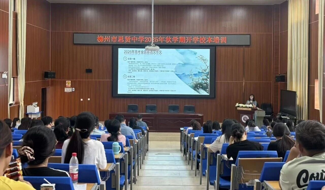 邱晴在2025年秋学期开学校本培训中对教师们进行培训。