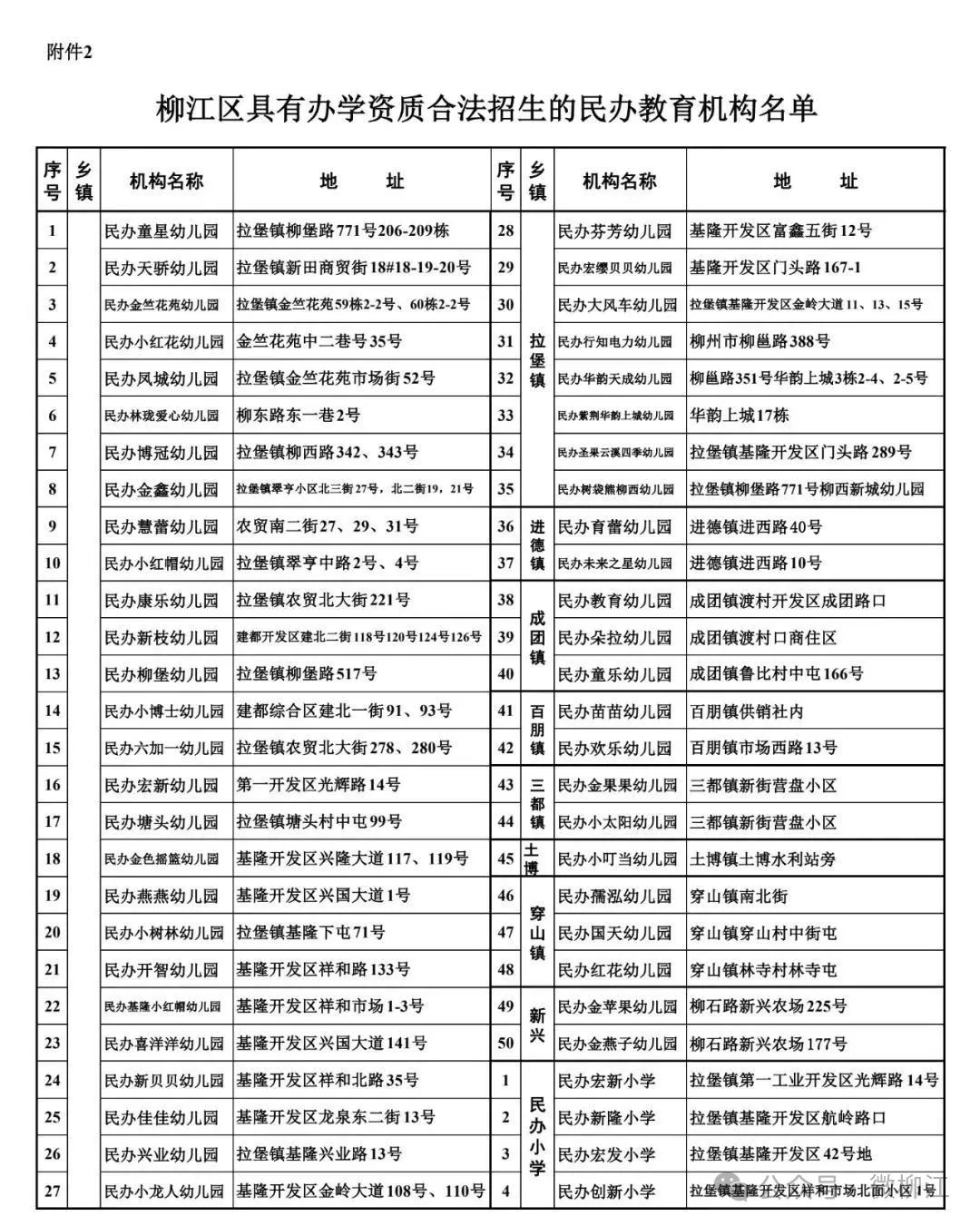 2.柳江区具有办学资质合法招生的民办教育机构名单