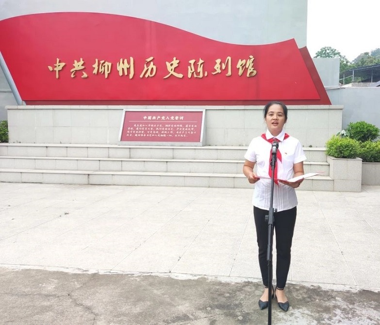 柳江区“江音嘹亮”宣讲团成员、“10后话百年”优秀宣讲员代表银一言从自身经历出发,以青春之声,讲述着党的故事,加深了队员们对红色文化的理解,让红色精神深深扎根在少先队员的心底。