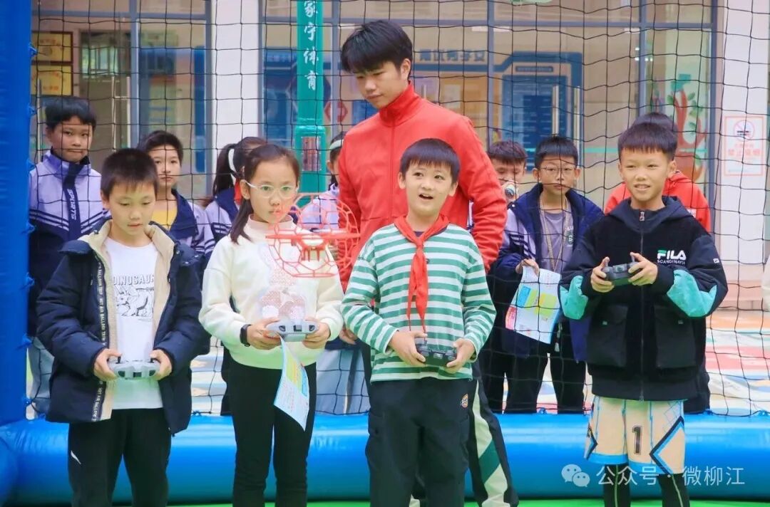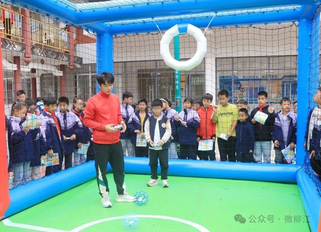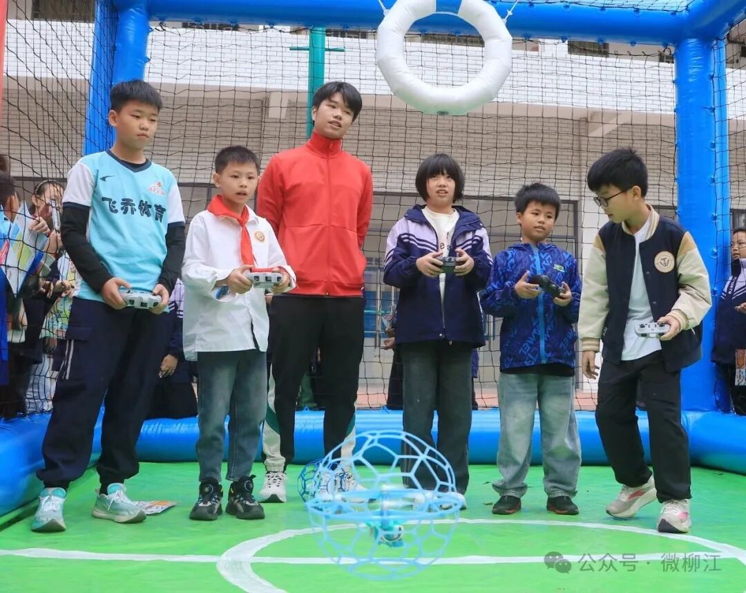 “原来无人机还能踢足球,太神奇了!我刚开始操控时总会撞墙,后来慢慢掌握技巧,现在能准确送到指定区域。”柳江区拉堡小学四年级4班学生覃耀萱在体验后兴奋地分享。
