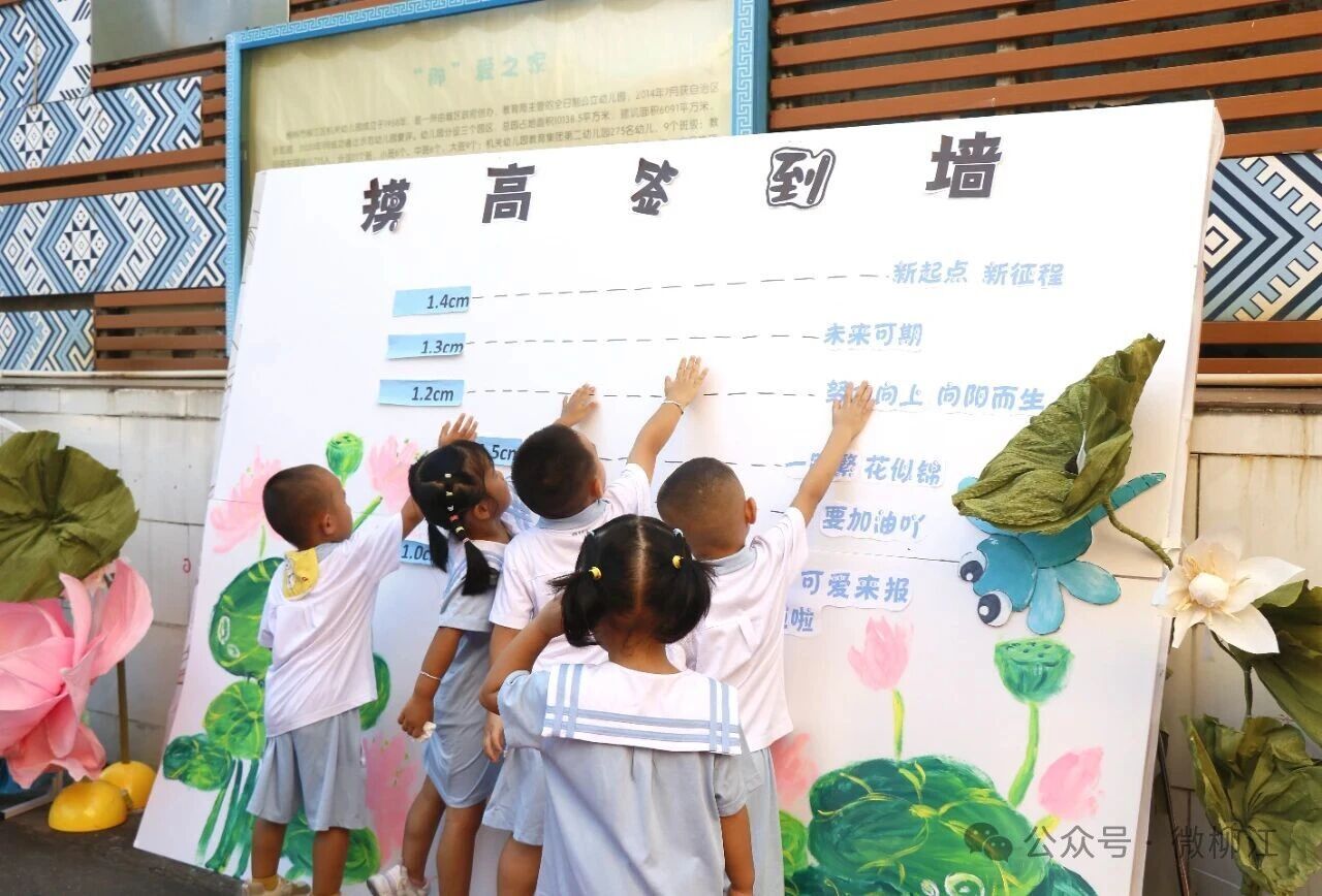 幼儿园各项工作准备充分,组织有序,教师们提前精心布置了温馨、活泼的班级环境,以饱满的热情迎接每一位孩子的到来。孩子们兴奋地参与“跳高签到”活动,奋力跃起触摸象征成长的新高度,与新的自己“击掌”;在“升班列车牌”环节,每一位孩子都自豪地领取并展示自己的“车票”,搭乘“升班列车”,正式迈入新的成长阶段。