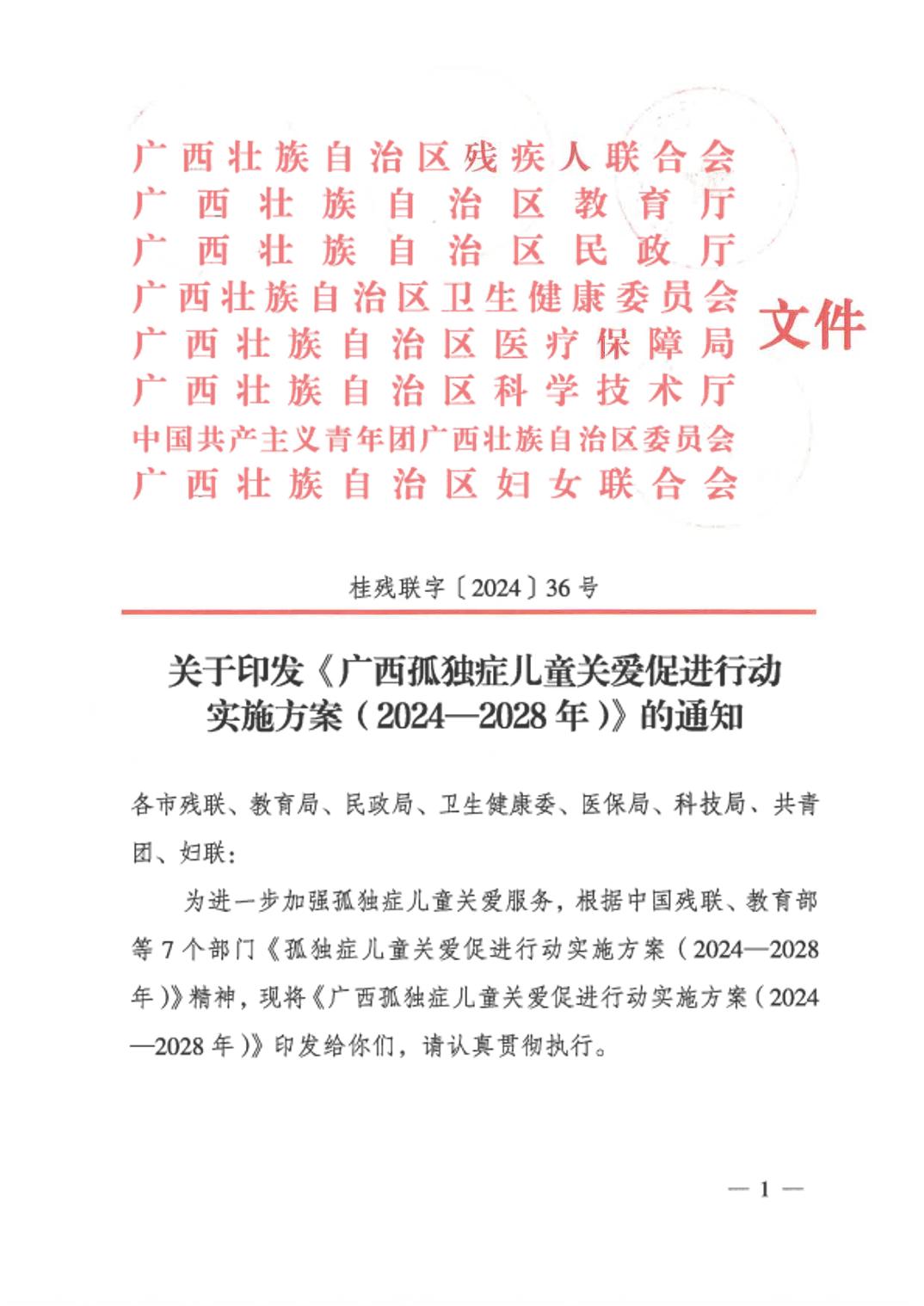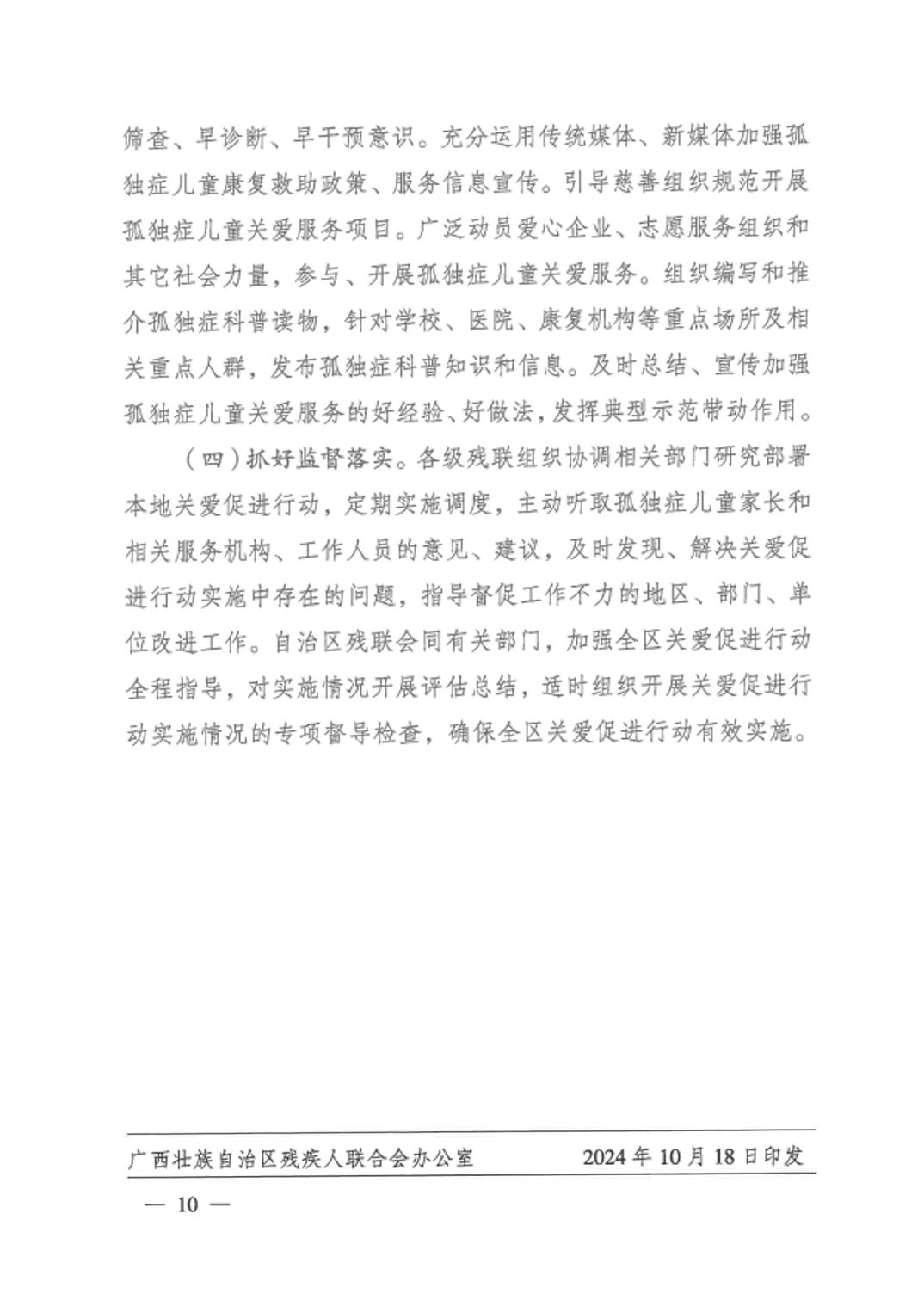 关于印发《广西孤独症儿童关爱促进行动实施方案(2024-2028年)》的通知