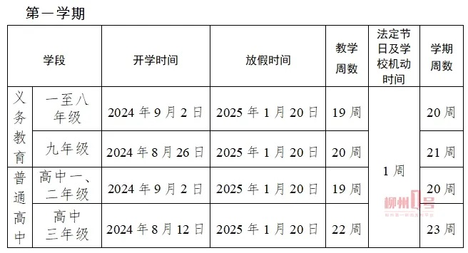 柳州市教育局7月5日印发了《关于印发2024—2025学年柳州市普通中小学校历的通知》。其中提到了时间安排和工作要求,一起来看看最新信息。