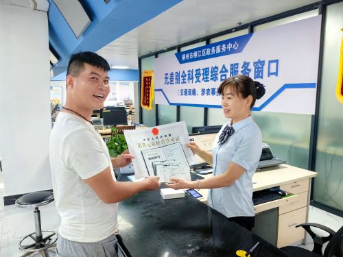 近日,梁先生在柳江区政务服务中心成功办理了《道路运输经营许可证》和《道路运输证》,这是柳江首例线上办结开办运输企业“一件事”。