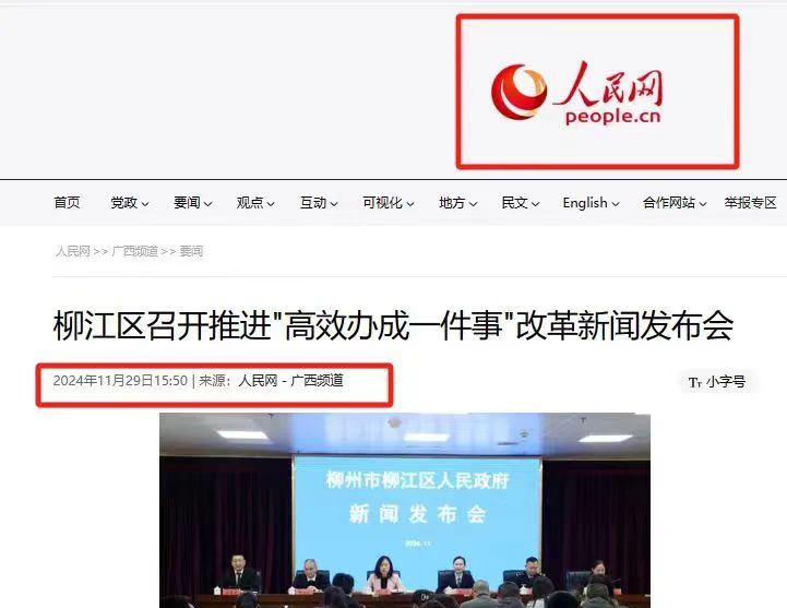 媒体报道点赞 改革成效获人民网、中国纪检监察报、广西日报、柳州日报等主流媒体聚焦报道。承办2024年柳江区人民政府“高效办成一件事”专题新闻发布会。