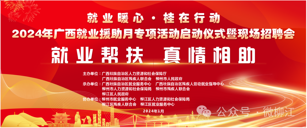 为全面贯彻党的二十大精神,坚决落实党中央、国务院关于就业工作的决策部署,切实帮助就业困难人员、农民工、残疾登记失业人员、退役军人、离校未就业高校毕业生等特殊群体实现就业创业,2024年1月10日在柳江区人民文化宫广场开展“‘就业暖心·桂在行动’2024年广西就业援助月招聘会”活动。