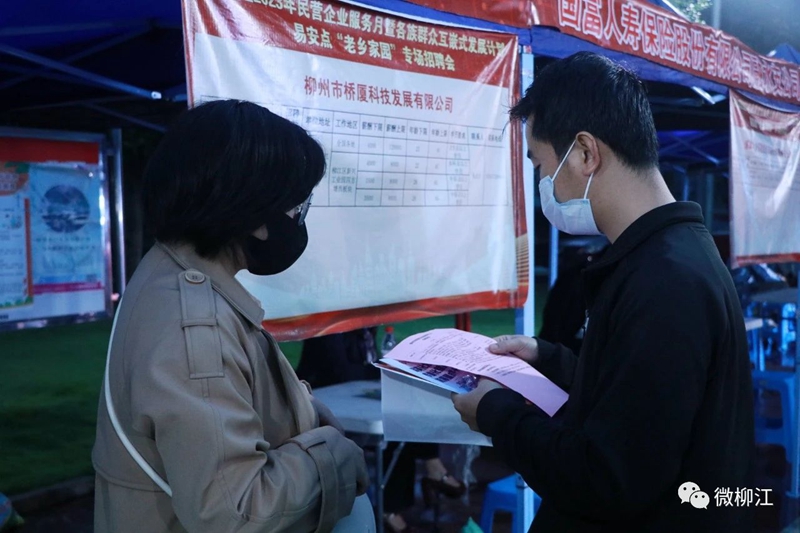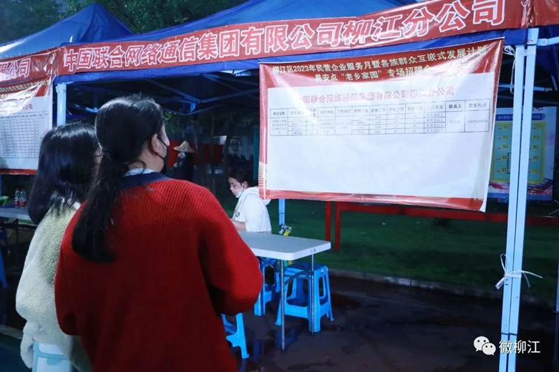 4月27日晚,柳江区2023年民营企业服务月暨各族群众互嵌式发展计划易安点“老乡家园”专场招聘会,在柳江区易地扶贫搬迁安置点——老乡家园成功举办。