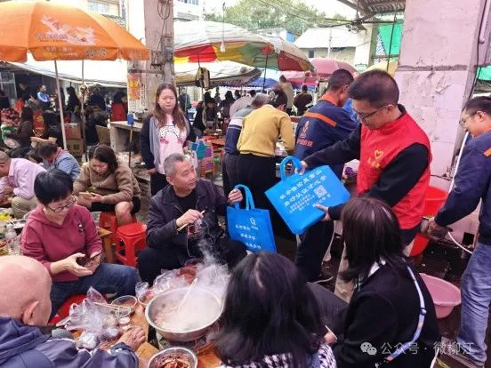 柳江区社会保险事业管理中心有关负责人组织该中心的社保业务骨干,在农贸市场上摆起摊位,为群众提供“算一算”服务。他们用通俗易懂的语言、生动形象的案例、简单直观的表述,让群众对社保待遇“看得懂算得清”。正在“打边炉”吃火锅的一名群众与工作人员几番交流后说:“我平时要么忙农活,要么忙摆摊,没有时间去大厅咨询社保业务。今天‘社保’赶大集,我的几个疑问终于得到了解答,我可以放心参保了。”