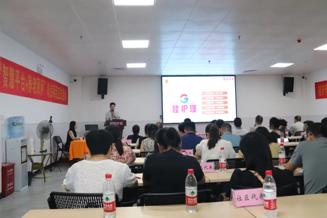 广西养老服务行业协会会长覃昌良等领导出席会议并为项目揭牌、授牌。来自广西养老行业服务协会的部分专家和会员代表、“养老顾问团”部分专家、“医康养服务联合体”成员单位、柳江城区各村(社区)负责人、以及部分服务单位(养老机构、家政、物业、人力资源、职校)等约50人共同见证了项目启动,并听取了两家项目实施机构对服务模式的分享介绍。