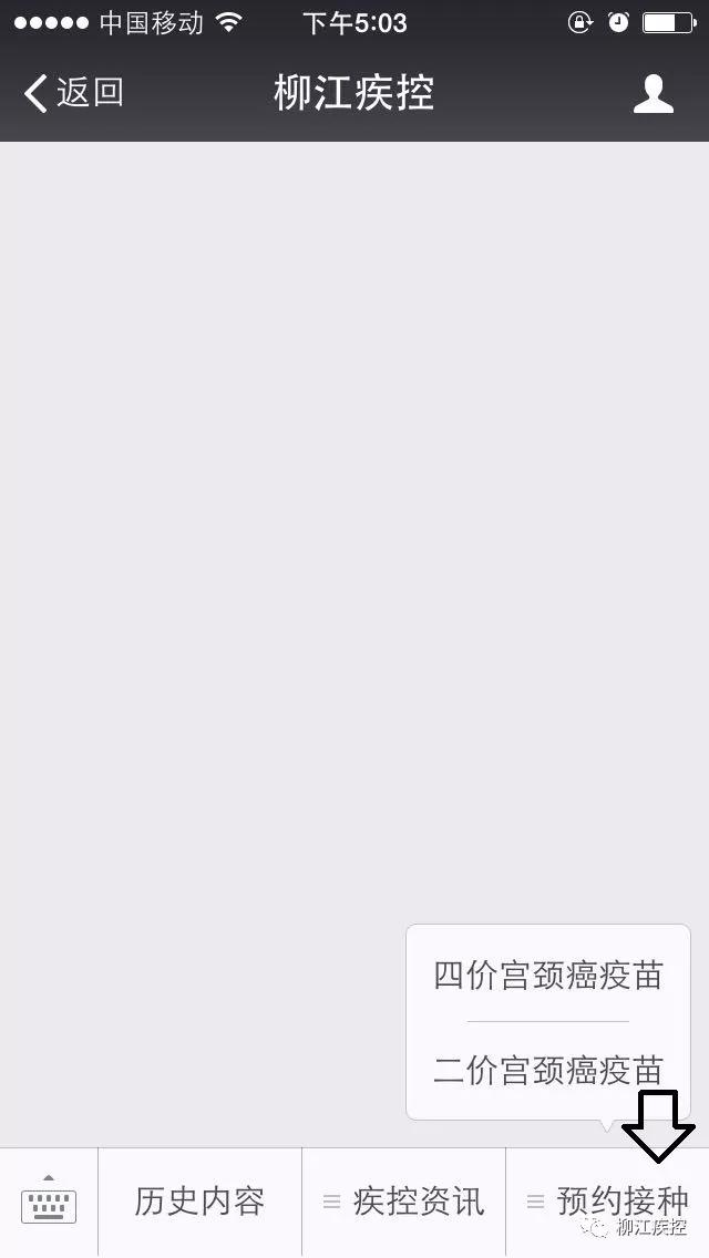 第二步:点击公众号下方的菜单栏“预约接种”,对2价和4价宫颈癌疫苗进行选择预约接种。