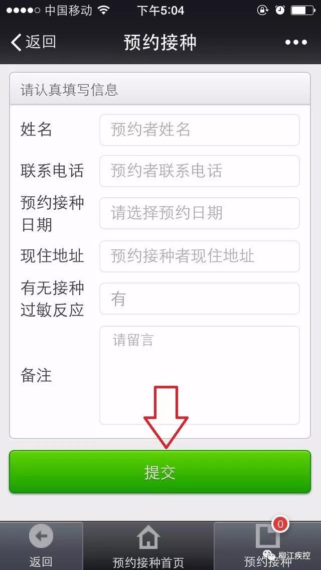 提示:预约接种者信息要真实准确,特别是“预约接种日期”,本点门诊只在每周一上午9:00-11:00开展宫颈癌疫苗的接种工作;再就是联系电话信息,方便工作人员联系回复。