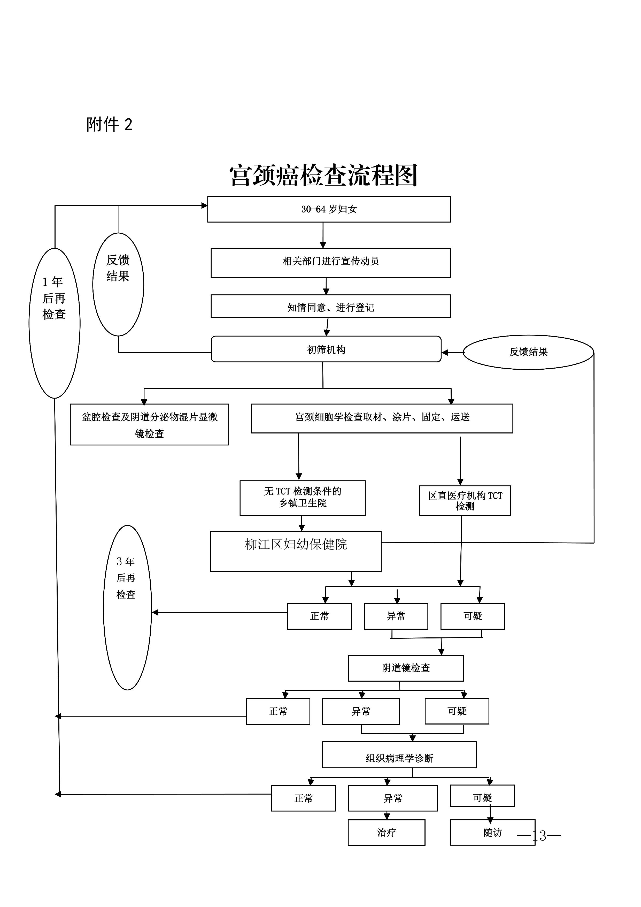6.进一步接诊机构:区妇幼保健院建立两癌筛查项目团队,优化转诊流程,负责对检出的可疑病例作进一步明确诊断和救治,诊治结果填写反馈卡(详见附件12)及时反馈至转诊机构。