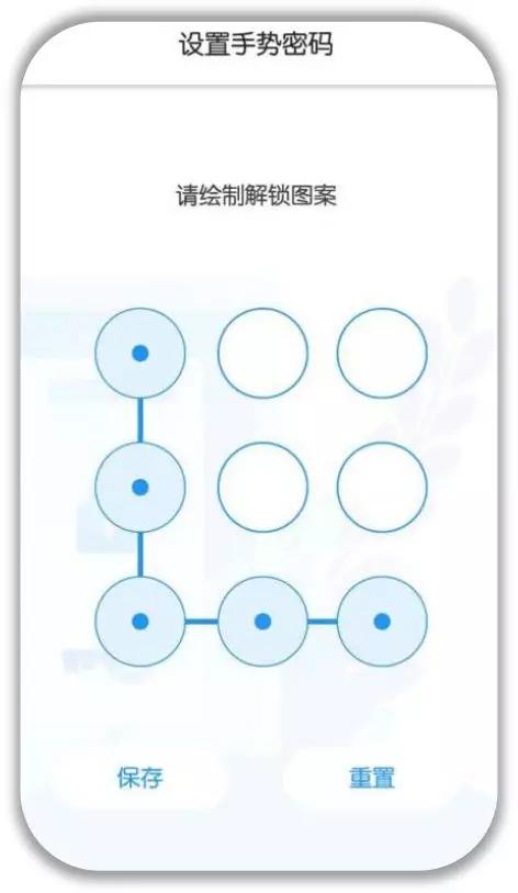 4.手机号注册成功后,直接进入手势设置界面,进行设置手势密码,点击“保存”即可。