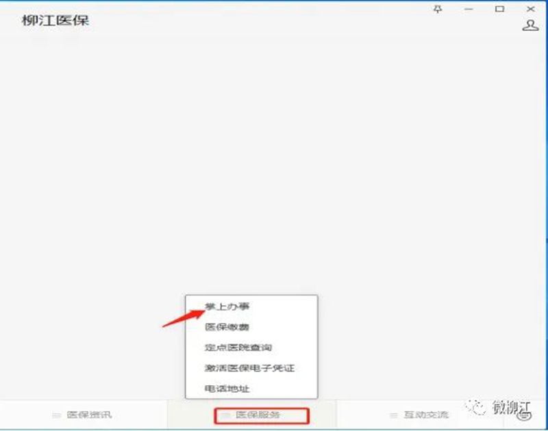 关注“柳江医保”微信公众号,点击“医保服务”进入“掌上办事”。