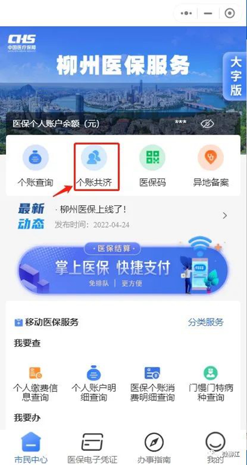 02点击“个账共济”进入