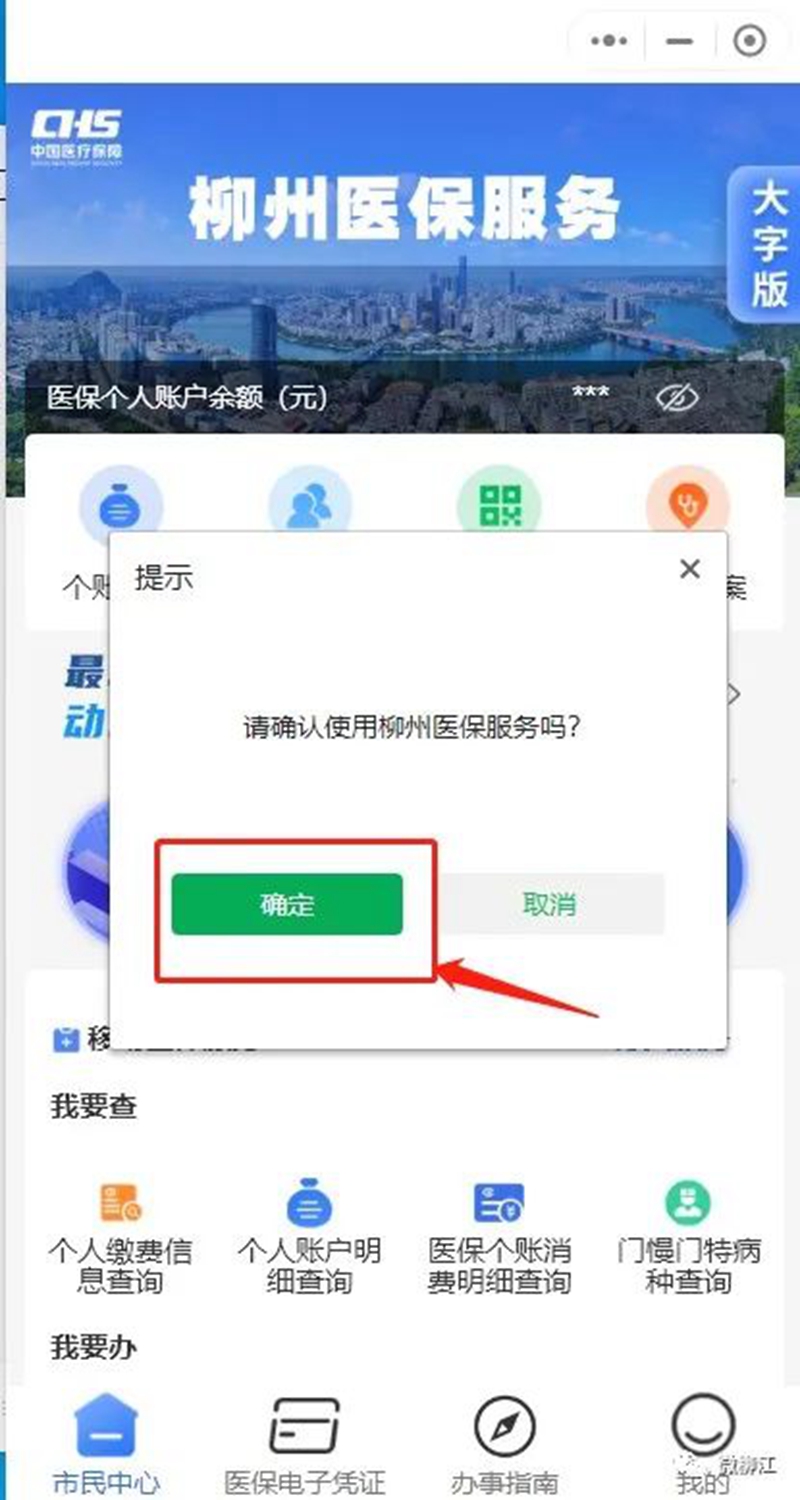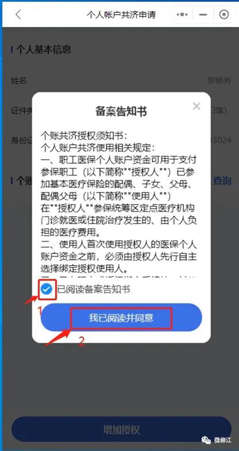 授权使用柳州医保服务,然后再次点击“个账共济”进入。