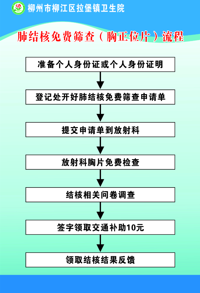 为进一步落实《自治区卫生健康委关于印发广西重点地区老年人等重点人群结核病主动筛查工作实施方案的通知》的要求,推进我辖区内65岁及以上老年人等重点人群结核病主动筛查工作的圆满完成,我院开展免费肺结核筛查,详细信息如下: