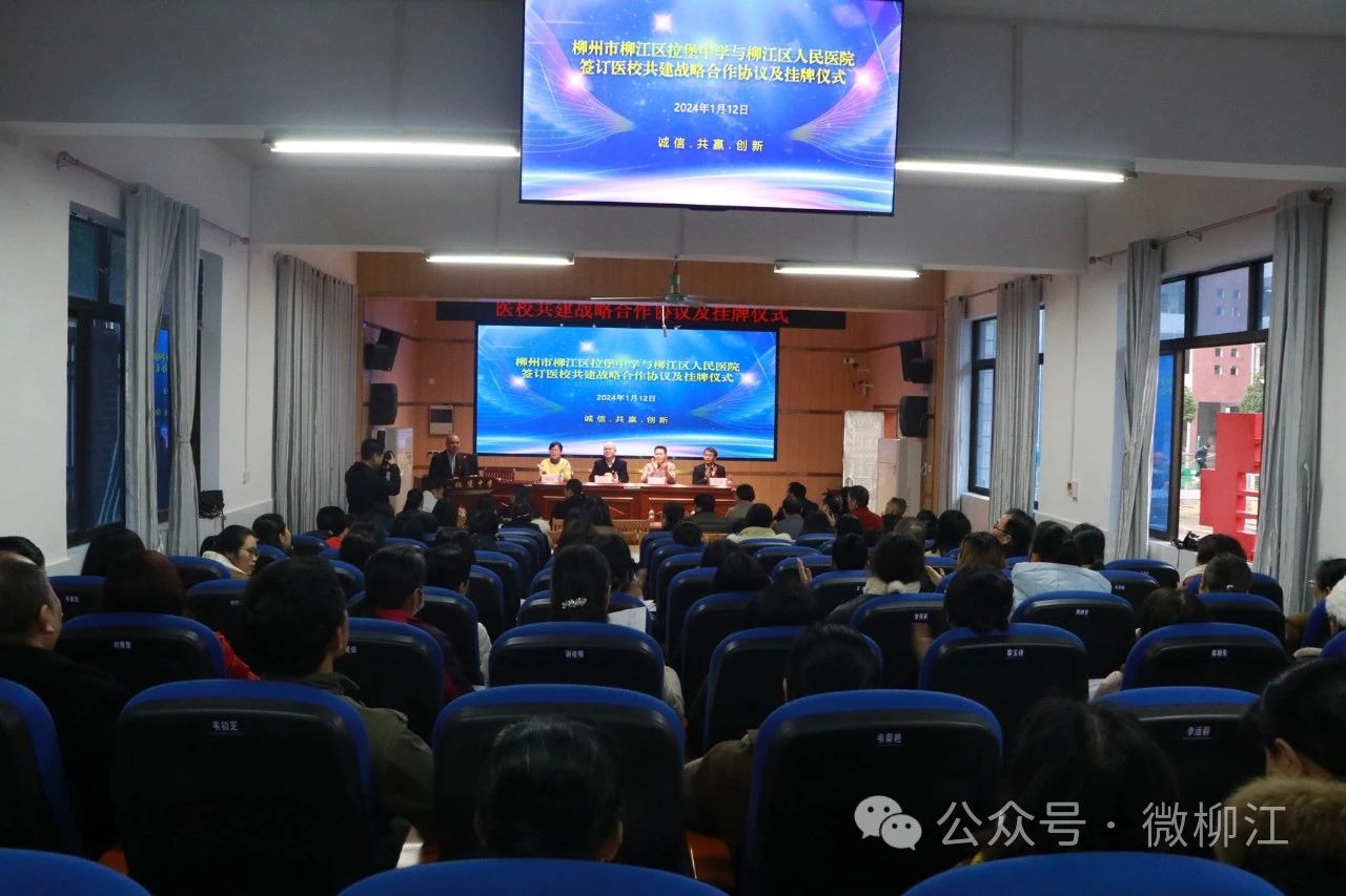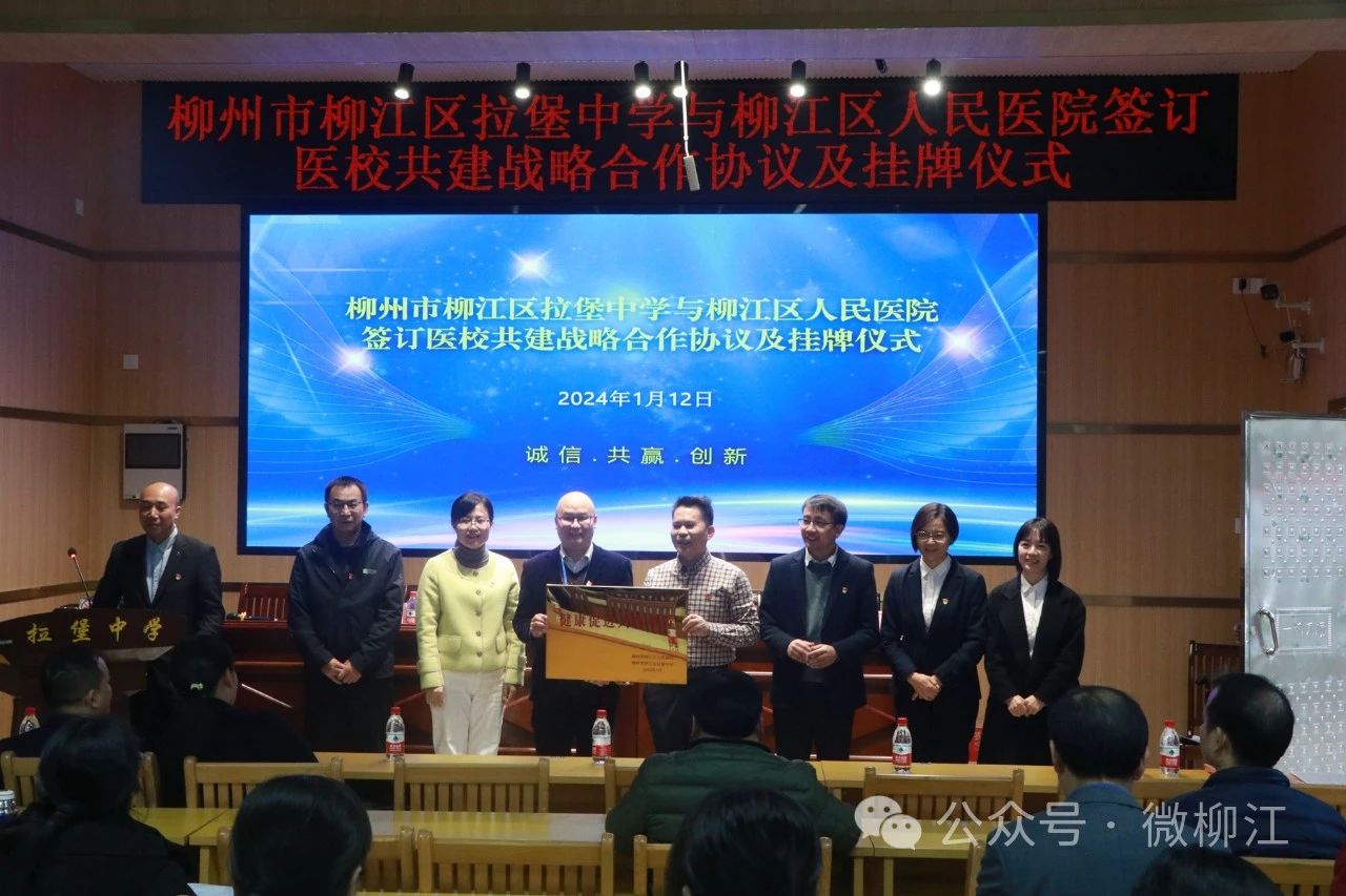 1月12日,柳江区人民医院分别与柳州市思贤中学、柳州市柳江区拉堡中学签订医校共建战略合作协议,并举行挂牌仪式。