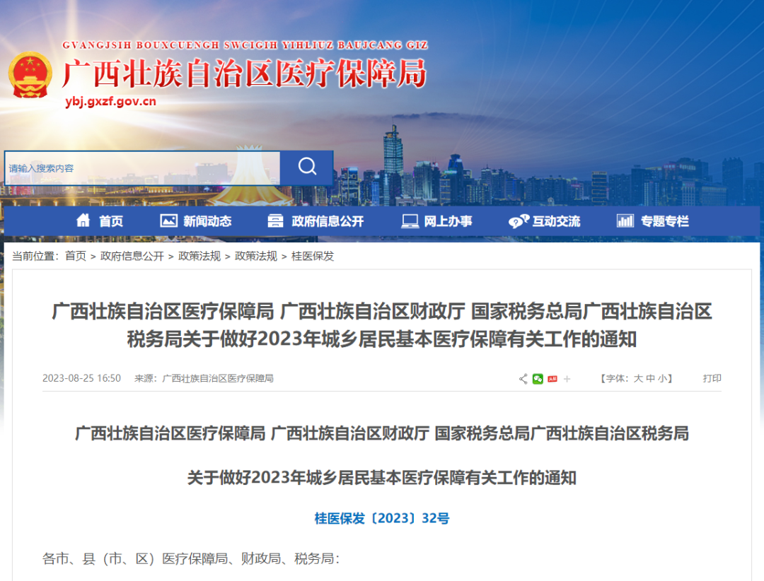 8月26日,记者从广西壮族自治区医保局获悉,广西多部门联合印发《关于做好2023年城乡居民基本医疗保障有关工作的通知》(以下简称《通知》),明确2024年度居民医保个人缴费,按照每人每年不低于380元的标准缴纳,缴费期自2023年9月1日启动。
