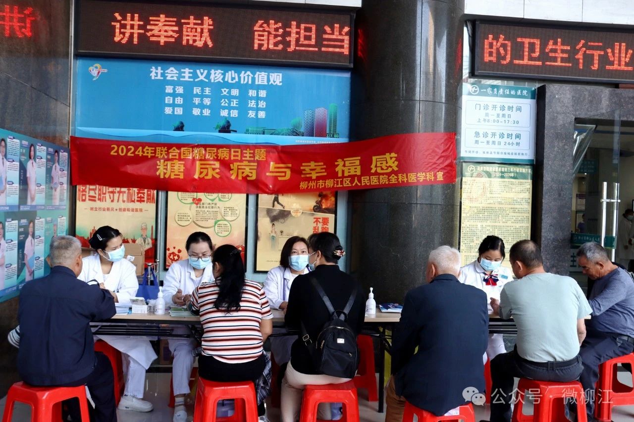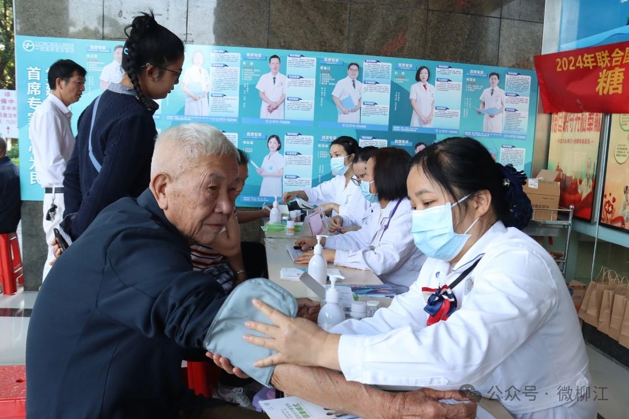 11月12日,在“联合国糖尿病日”来临之际,柳江区人民医院开展义诊及宣教活动,进一步提高群众对糖尿病的关注度,增强自我保健意识。