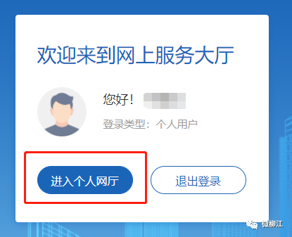 ②输入账户和密码登录进入网上服务大厅,点击“进入个人网厅”