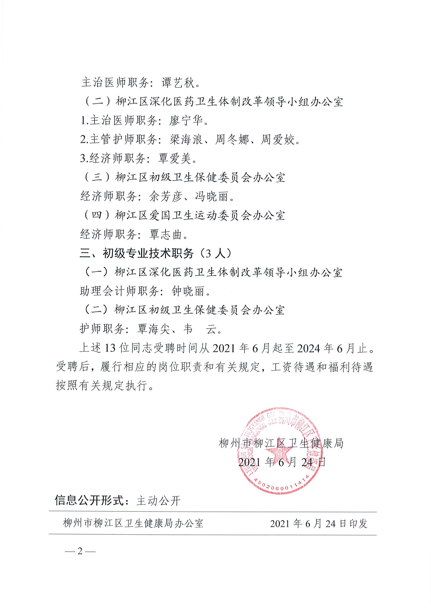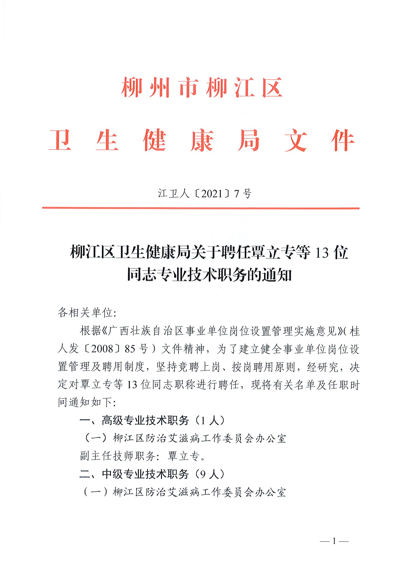 江卫人〔2021〕7号关于聘任覃立专等13位同志专业技术职务的通知