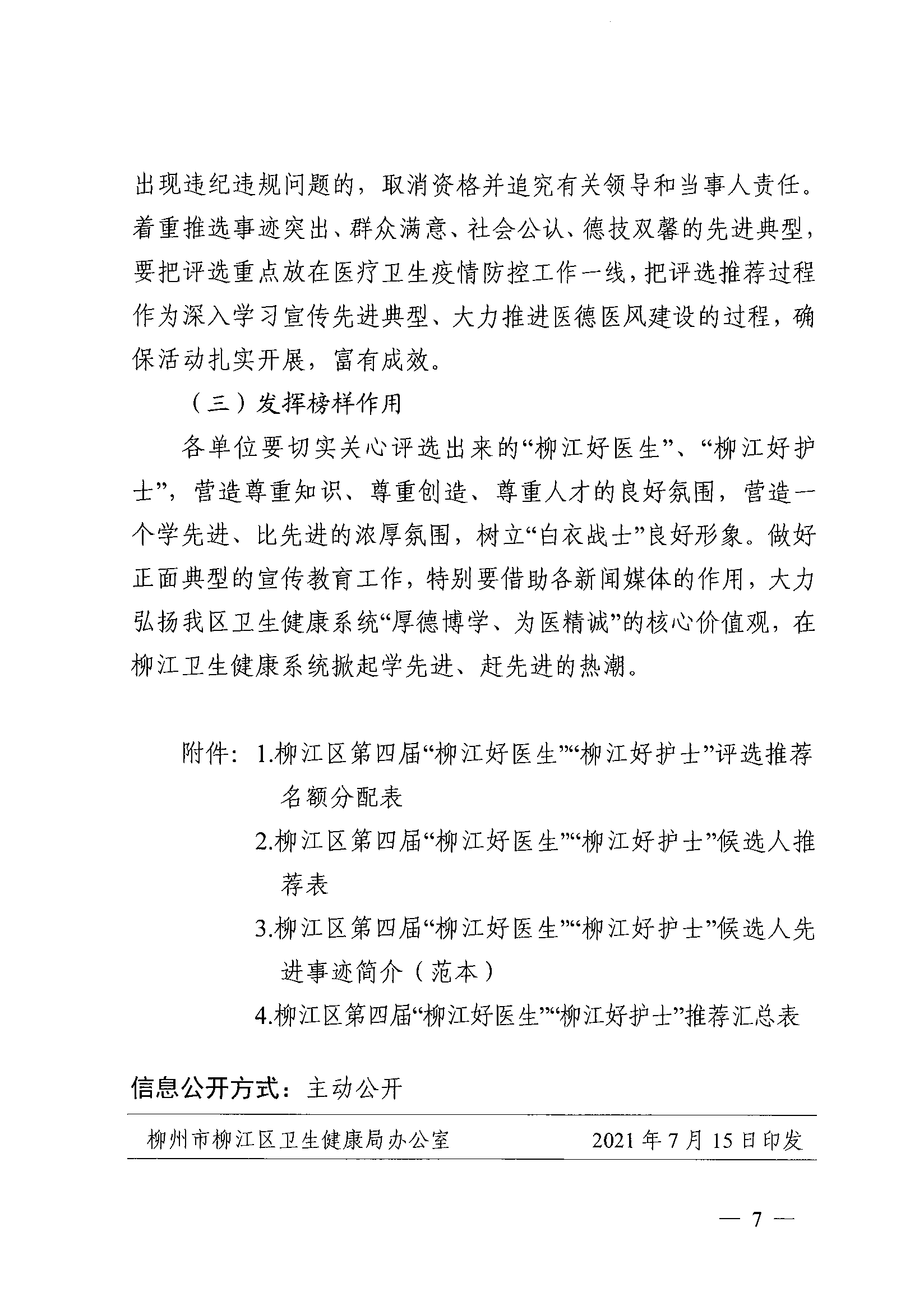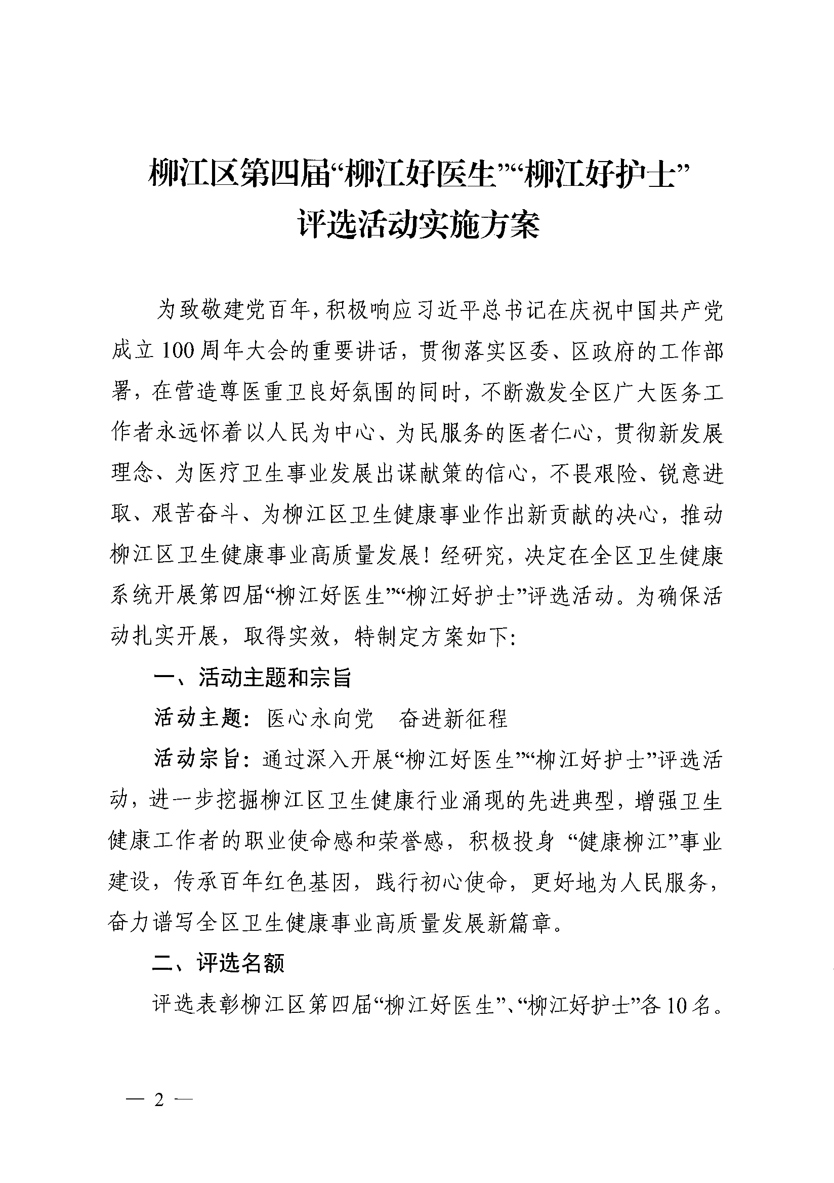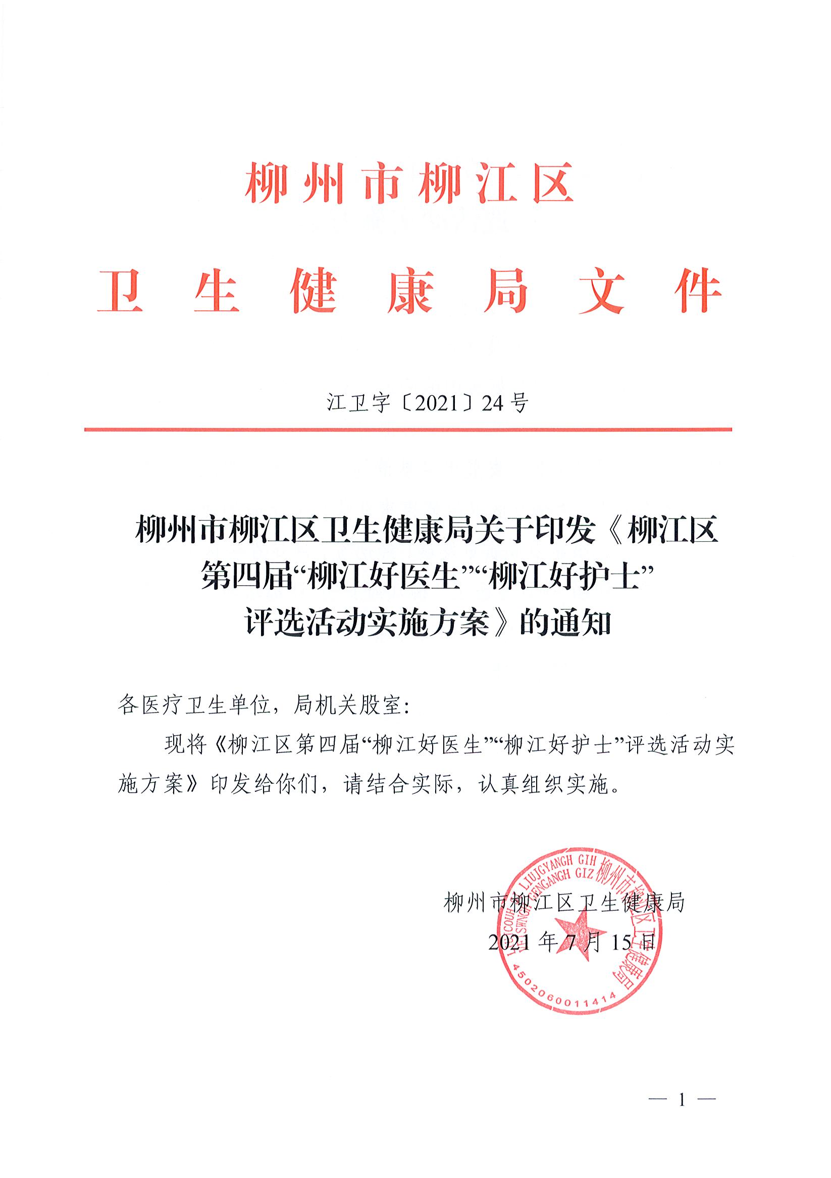 江卫字〔2021〕24号 关于印发《柳江区第四届“柳江好医生”“柳江好护士”评选活动实施方案》的通知