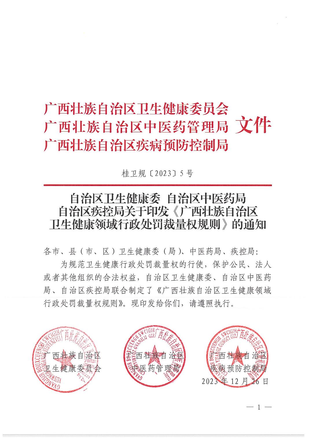 转发自治区卫生健康委自治区中医药局自治区疾控局关于印发《广西壮族自治区卫生健康领域行政处罚裁量权规则》的通知