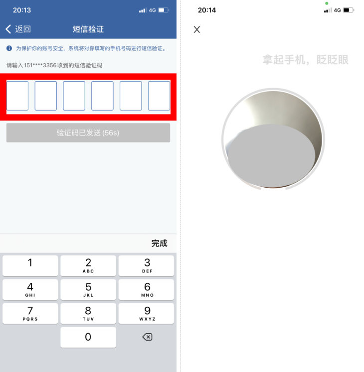 3、新的手机号码将收到短信验证码,输入验证码,进行人脸识别;