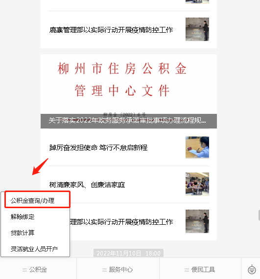 1.打开公众号,通过“公积金查询/办理”进入公积金信息首页。