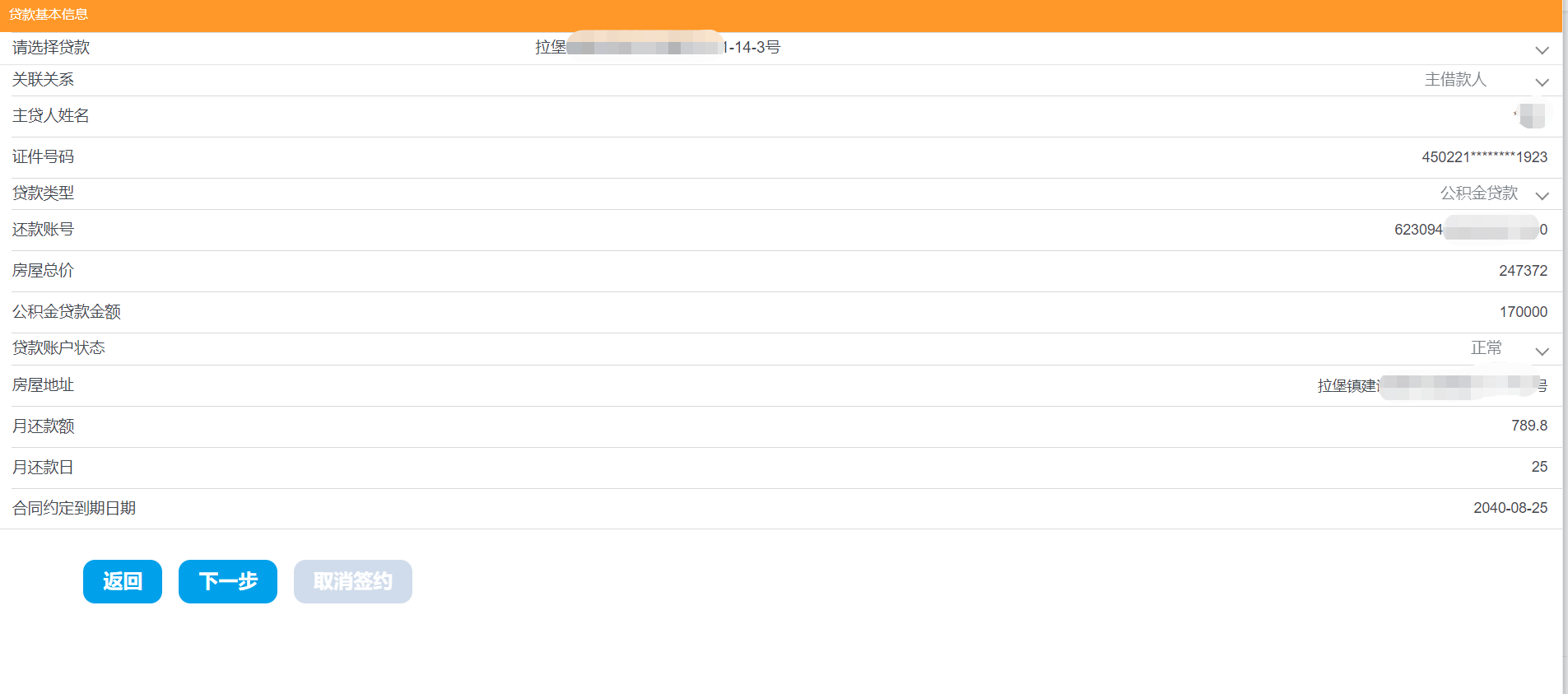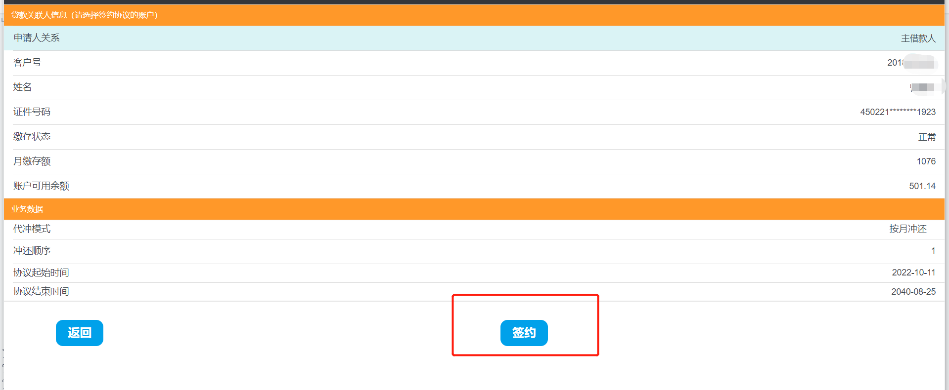 2.选中对应的贷款信息,点击“下一步”弹出冲还贷协议信息。