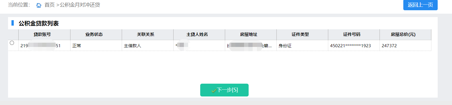 1.点击“公积金逐月冲还贷”进入贷款信息界面。