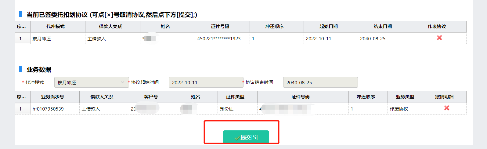5.点击“作废协议”,确认后进入业务数据列表,提交后解约生效。