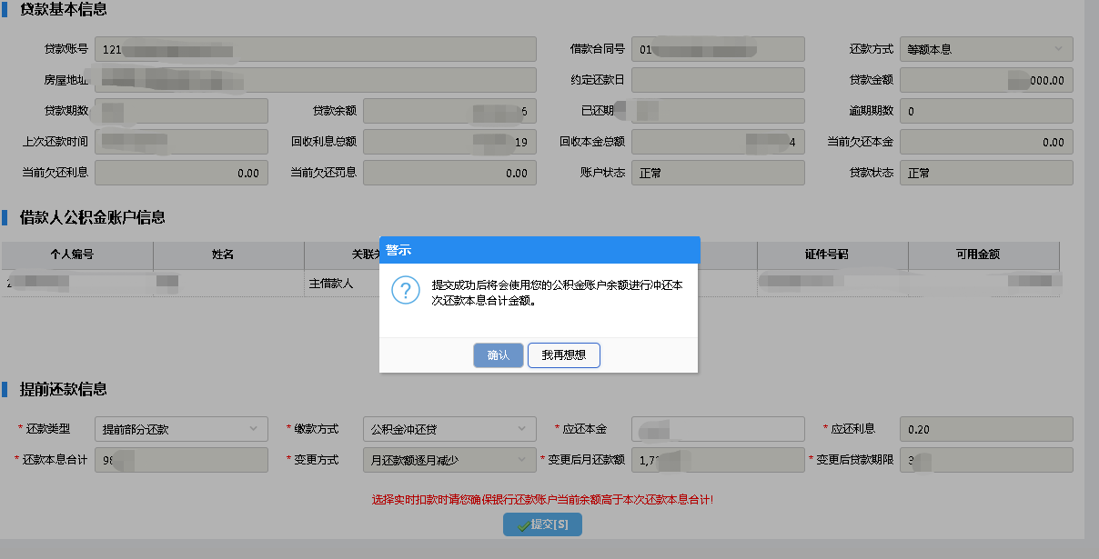 3.若办理提前部分还款,“应还本金”需填入所需偿还的本金金额,系统自动计算应还利息和本息合计。