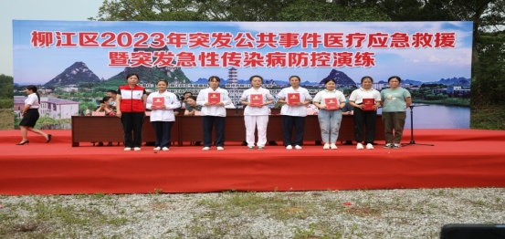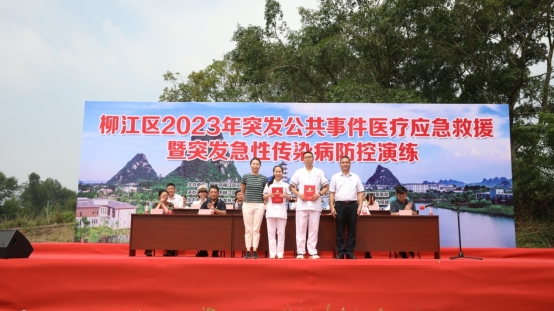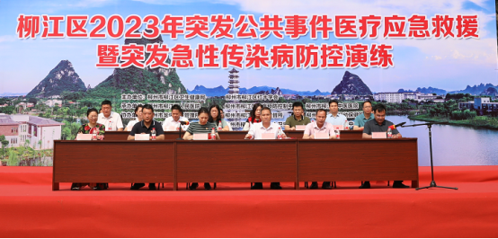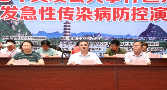 2023年5月18日下午至19日上午,柳江区开展“2023年突发公共事件医疗应急救援暨突发急性传染病防控演练”。此次活动由柳江区卫生健康局、柳江区红十字会主办,柳江区人民医院、柳江区中医医院、柳江区疾病预防控制中心承办,柳江区妇幼保健院、柳江区卫生监督所、柳州市龙怀水库管理所及各乡镇卫生院协办。参加此次活动的有柳州市卫生健康委应急办负责人陆筱聪、柳州市120急救指挥中心副主任王彬、柳江区卫生健康局领导班子、各医疗卫生机构的主要负责人和各医疗卫生机构的参赛人员。