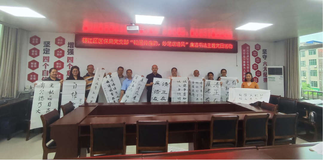为弘扬廉洁正能量,有效发挥廉洁文化引领示范作用,9月13日,柳江区医保局党支部开展“翰墨传廉韵,秒笔颂清风”廉洁书法主题党日活动,进一步促进党员干部将廉洁意识“内化于心,外化于行”,助推清廉机关建设走深走实。