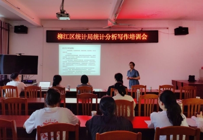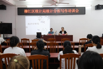 为进一步提高柳江区统计业务人员分析写作能力,有效提升统计服务决策水平,7月9日上午,柳江区统计局举办统计分析写作培训会。会议由区统计局局长韦璟辉主持,特邀柳州市统计局四级调研员刘进授课。柳江区统计局28名干部职工参加培训。