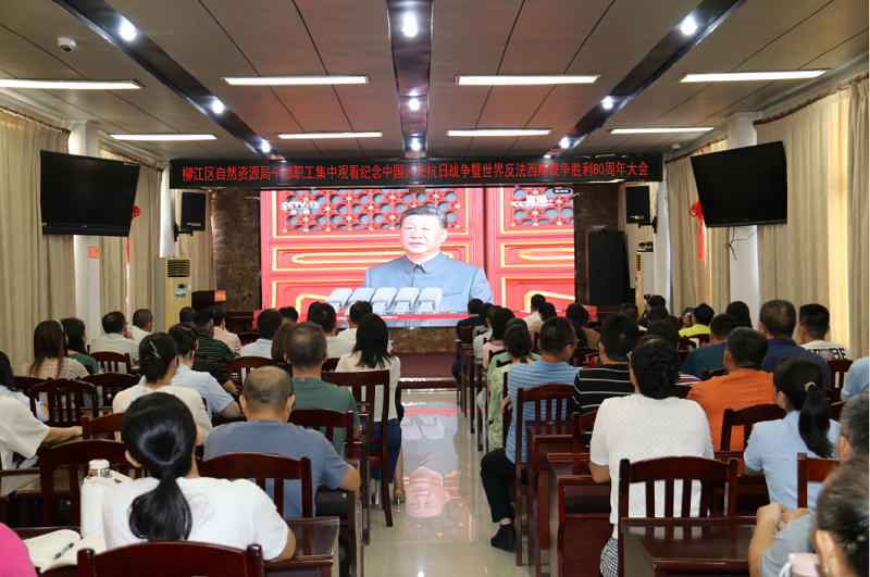 凝聚爱国情 砥砺奋进心——柳江区自然资源局干部职工集中观看纪念中国人民抗日战争暨世界反法西斯战争胜利80周年大会