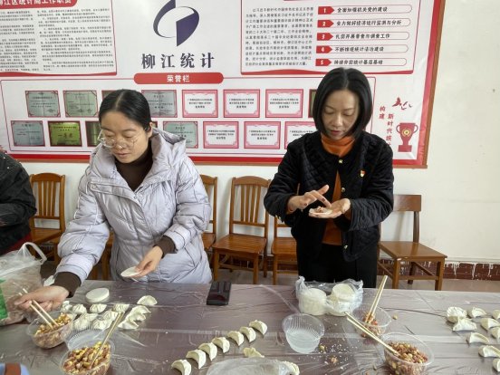 活动中,银行工作人员向在座职工宣讲反诈骗知识和理财知识,进一步筑牢统计干部反诈骗意识和能力。宣讲结束后,工作人员将提前准备好的饺子馅、面皮等食材整齐摆放,大家围桌而立,撸起袖子大显身手。干部职工们边包饺子边分享生活趣事;部分“骨干”手把手教学,收获丰硕“成果”。包出的饺子形态各异,却都承载着节日的喜悦和新一年的期盼。最终,大家品尝着亲手包制的饺子,在欢乐中结束了本次活动。