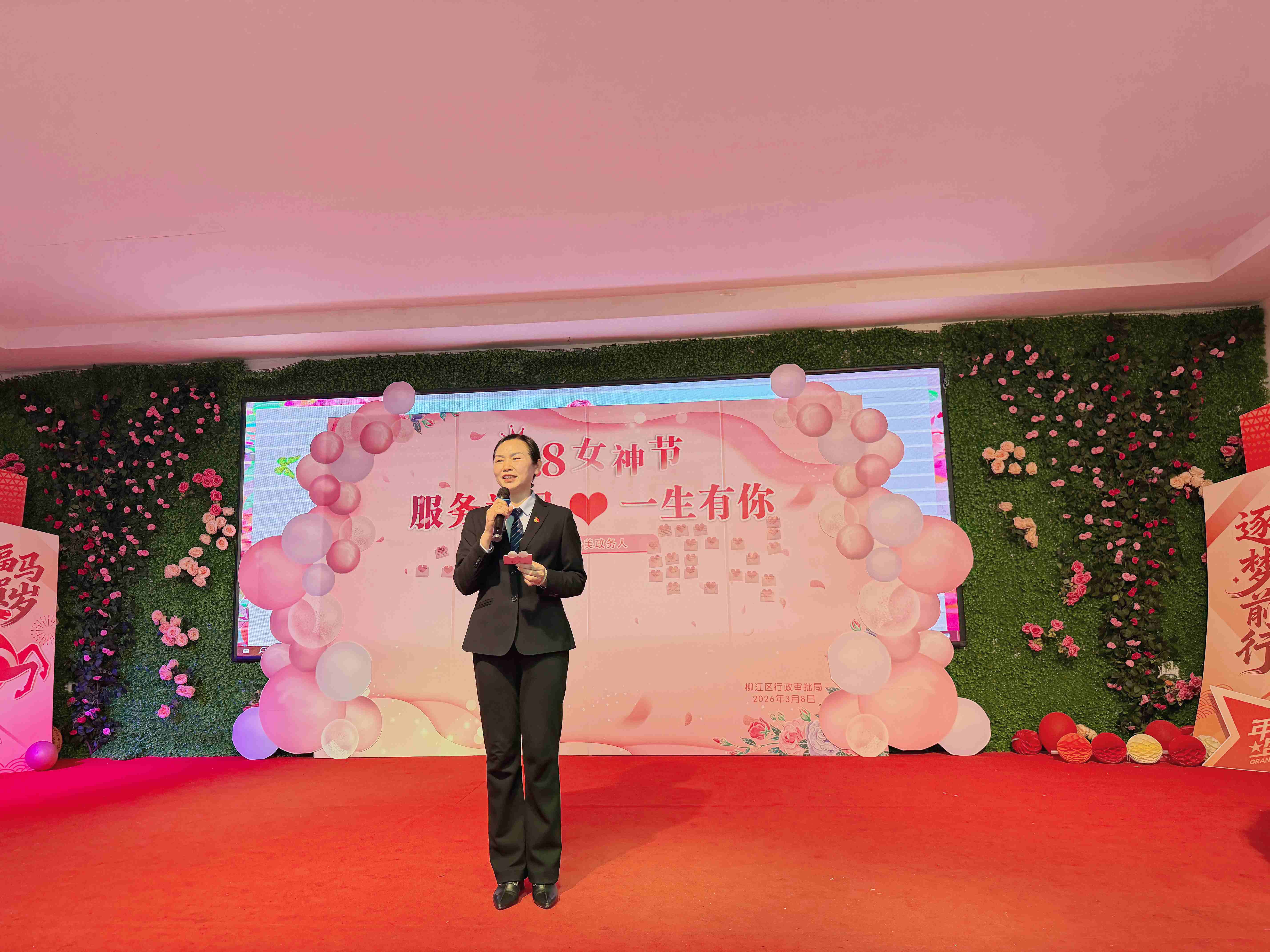 局领导班子代表登台合唱《阳光总在风雨后》,用歌声传递敬意。班子成员为全体女同胞逐一送上玫瑰花与节日祝福,现场气氛温馨热烈,掌声不息。