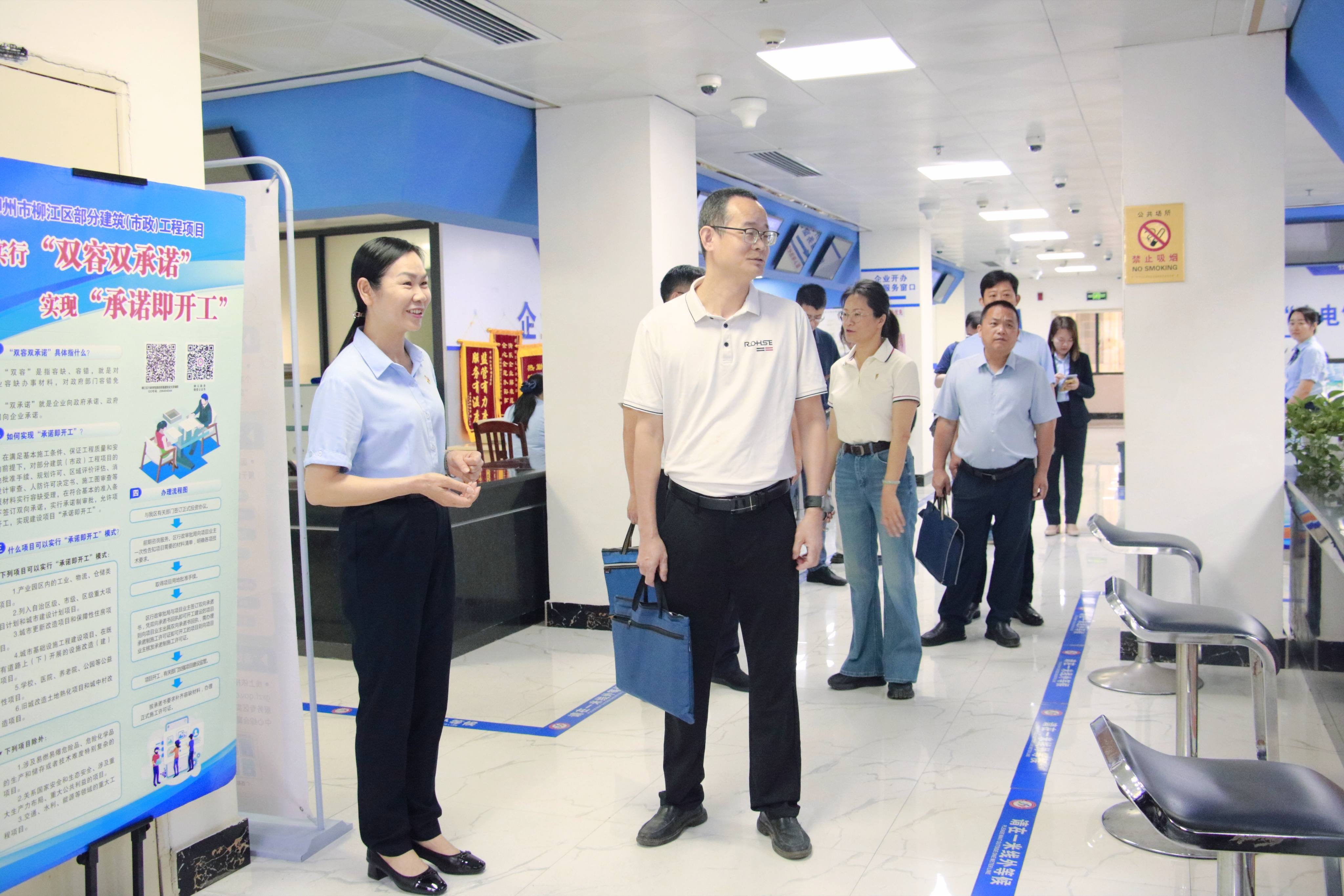 市局调研组成员对区政务服务中心进行了实地调研,详细了解大厅的功能分区、窗口设置以及柳江区在优化营商环境、“高效办成一件事”、帮办代办等重点工作开展情况。