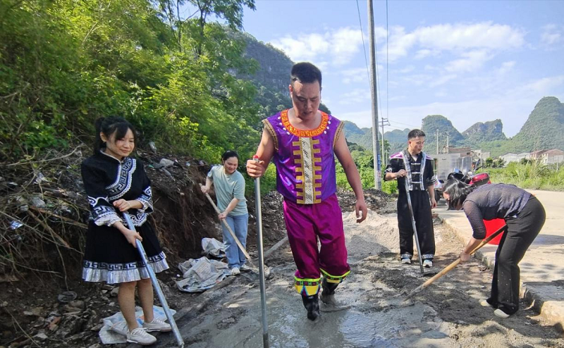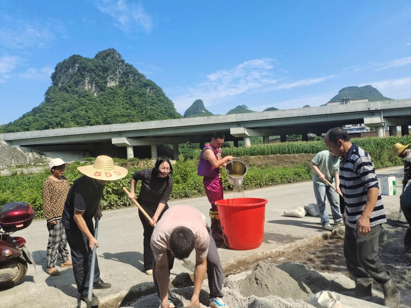 新村屯垃圾存放点位于村口大路边,群众人来人往,地面杂草丛生,垃圾有时扔到地上,难看又难清理,环境卫生问题突出,亟需加以改造。“今天天气这么炎热,你们还大老远地来这里帮忙,辛苦了!谢谢你们为村里做贡献。”不少路过的村民纷纷点赞。活动中,党员、干部和群众弘扬劳动精神,不怕苦、不怕累、不怕脏,分别拿起锄头、铲子、水桶等劳动工具,有的搬运建材,有的清理杂物,有的拌混凝土,对场地进行垃圾清运、修整扩宽、平整硬化,大家热情高涨、相互帮助、团结协作、干劲十足,有序地进行劳动,尽情地挥洒着汗水,呈现出一派热火朝天的干群劳动景象。只一天功夫,就平整出一块长10米宽3米的水泥地平。地面硬化后,不仅干净整洁,也更加实用高效。区信息中心和村委把之前的垃圾清理干净再投入使用,后续将对新改造的垃圾存放点进行规范管理,加强垃圾分类宣传,让村民逐步养成垃圾分类的习惯,进一步改善人居环境。